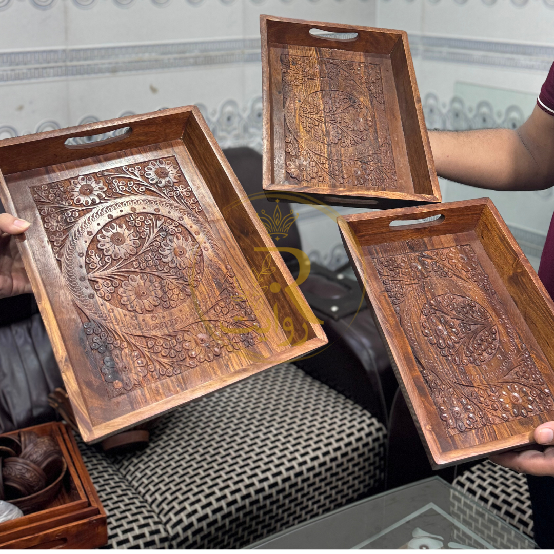 Carving Tray Set: Exquisitely handcrafted trays with detailed carving, perfect for stylish serving