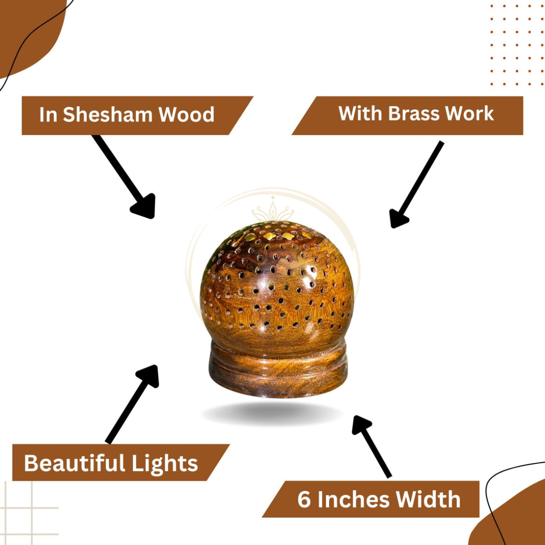 Bring warmth, artistry, and natural elegance into your space with this handcrafted dome-shaped wooden lamp, thoughtfully designed to create a calming ambient glow. Made from high-quality natural wood, this lamp features artistic perforations that allow light to softly diffuse, casting beautiful patterns that elevate any interior.