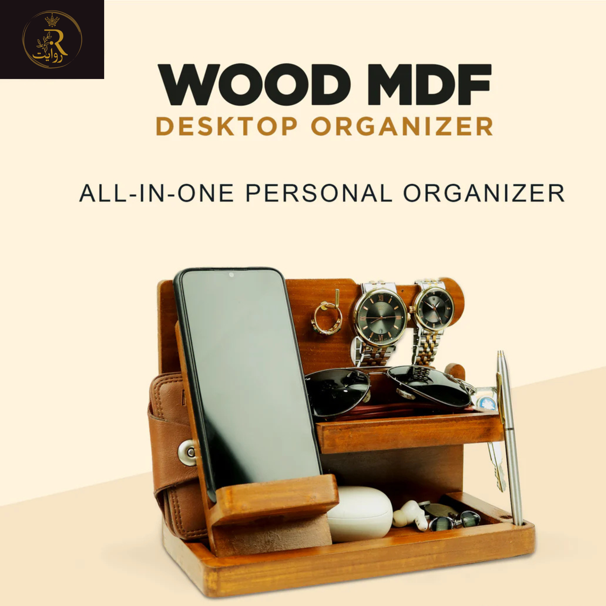 Declutter your space in style with this Multifunctional Wooden MDF Desk Organizer – a smart solution to keep your phone, watches, keys, wallet, glasses, and daily essentials in one place. Whether it's your office desk, bedside table, or entryway shelf, this docking station helps you stay organized and ready to go.